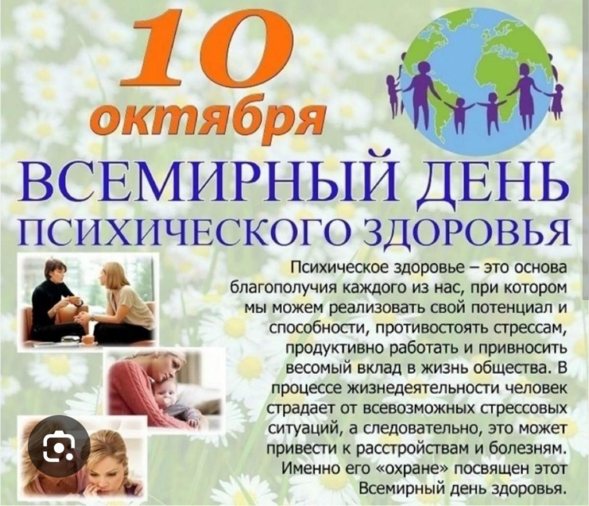 10 октября 2025 года отмечают Всемирный день психического здоровья. Психическое здоровье – это не только отсутствие различных расстройств, но и состояние благополучия, когда человек может противостоять стрессам, продуктивно работать.