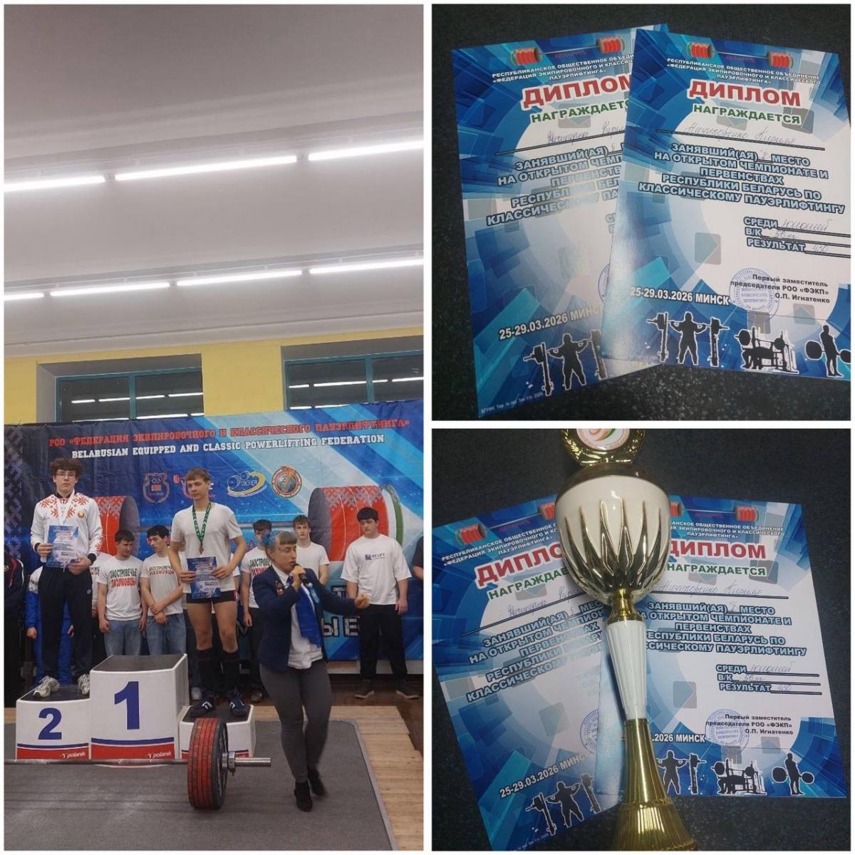 В Чемпионате  Республики Беларусь по классическому пауэрлифтингу Ничипоренко Кирилл, учебная группа ПО-523, завоевал серебрянные награды (категория 66 кг) среди юношей и среди мужчин с результатом 430 кг.