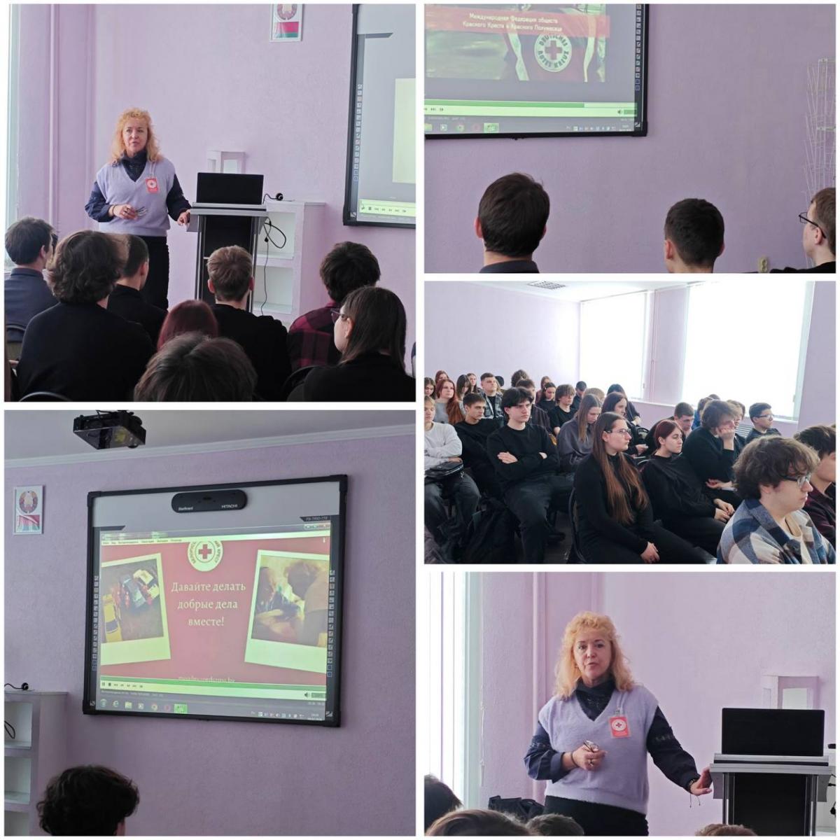 Вниманию участников предложена информация о Международном Движении Красного Креста и Красного Полумесяца, истории создания Движения. Ирина рассказала, что волонтерская деятельность в Белорусском Обществе Красного Креста — это добровольческая деятельность, которая направлена на оказание помощи нуждающимся людям в рамках уставной деятельности БОКК. Учащиеся смогли в непринужденной обстановке обсудить основные направления деятельности волонтеров по укреплению потенциала БОКК, задать интересующие вопросы специалисту.Хочется отметить, что такие встречи очень важны и помогают организовать работу с волонтерами на более качественном уровне, способствуют укреплению связей между волонтерами различных организаций, обмену имеющимся опытом работы.