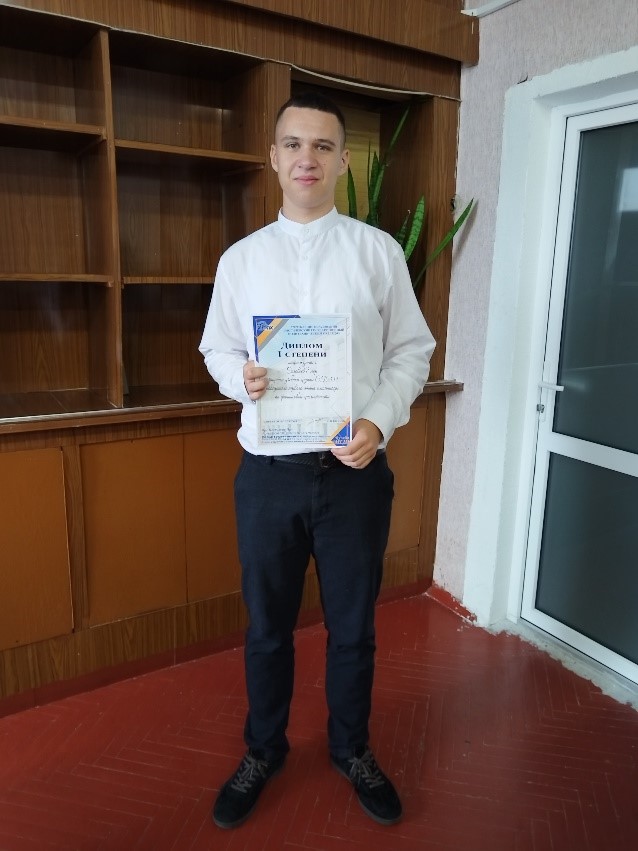 Диплом 1 степени - учащийся учебной группы СП-532 Соловьёв Егор