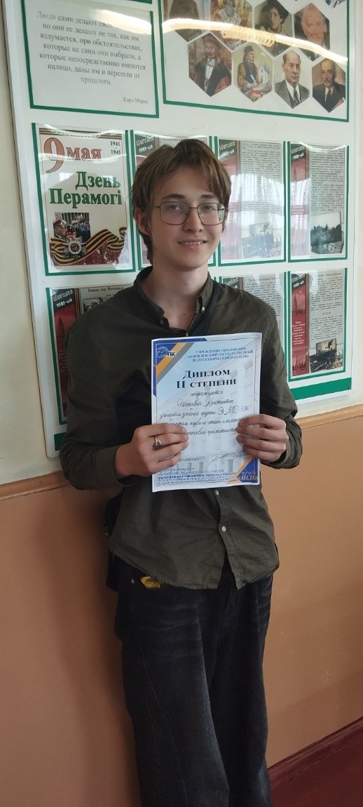 Диплом 2 степени - учащийся учебной группы ЭМС-536  Исакович Константин.