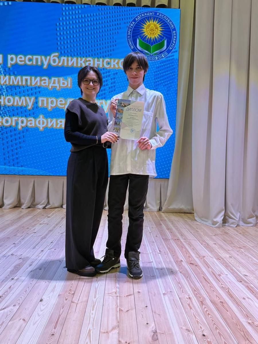 Поздравляем победителя (ДИПЛОМ 2 степени) третьего (областного) этапа республиканской олимпиады по учебному предмету «География», ДРОБОТОВА Алексея, учащегося учебной группы ЭМС-520  и  преподавателя СТАРОДУБ Ирину Игоревну!!!