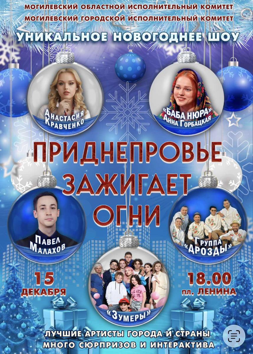 И главное! Новогоднее патриотическое шоу даст старт череде праздничных мероприятий в Могилевской области.