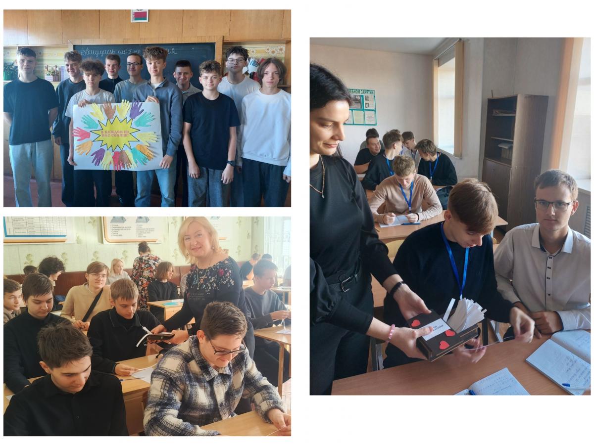 Прошёл психологический практикум «В каждом из нас солнце». Учащиеся писали на вырезанных из бумаги ладошках тёплые пожелания сверстникам, друзьям, педагогам. Такая форма работы способствовала развитию эмпатии, укреплению дружеских связей и поднятию общего эмоционального фона.