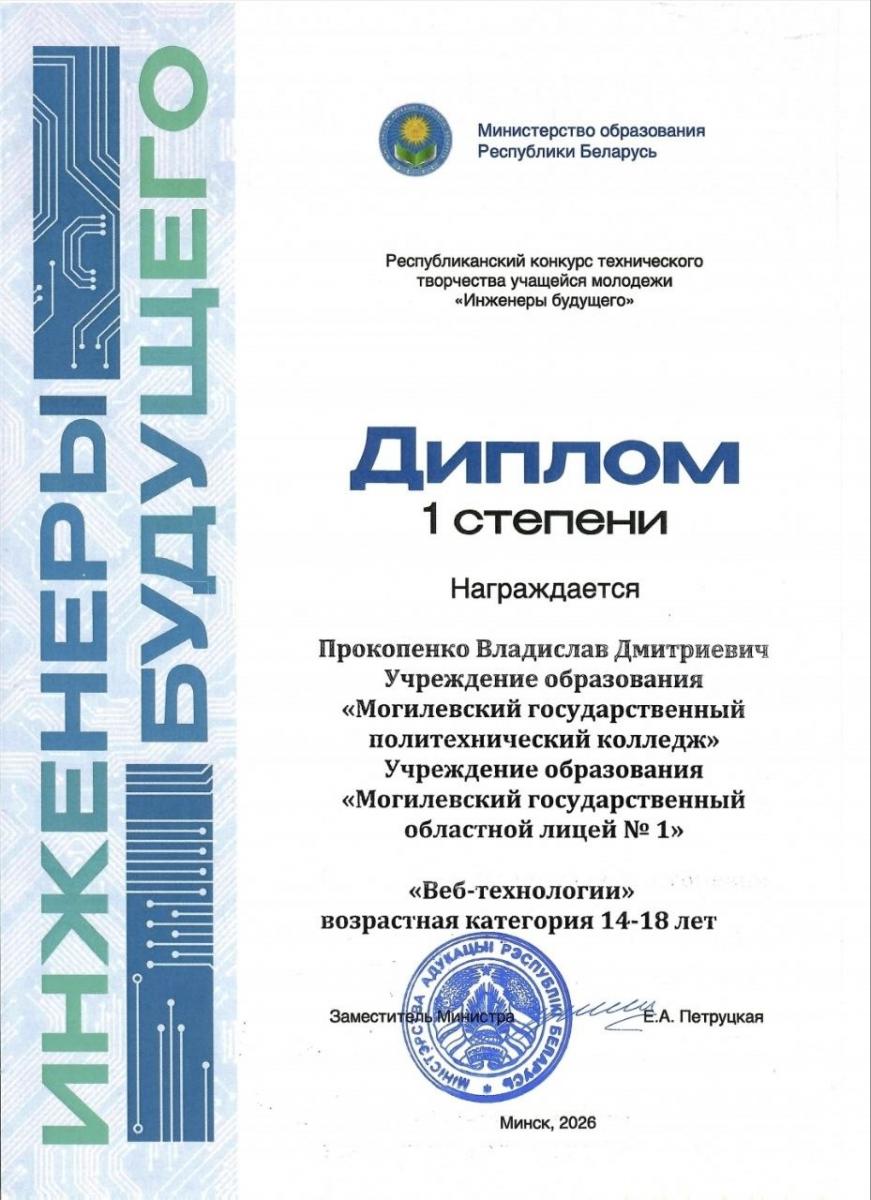 УО"Могилевский государственный политехнический колледж" Министерством образования Республики Беларусь.