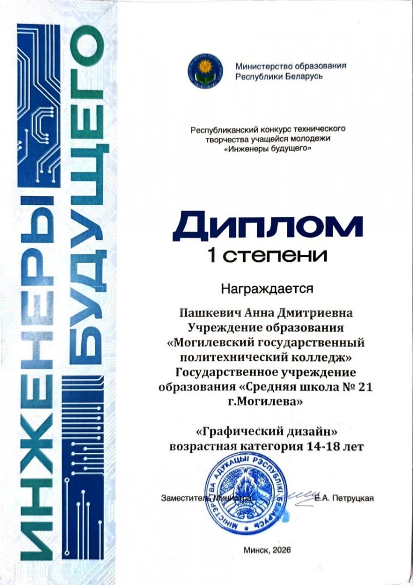 Поздравляем ДЕНИСОВЦА Дениса Алексеевича и ПОПКОВУ Юлию  Александровну,  подготовивших учащихся ГУО «Средняя  школа №21 г.Могилева» и УО «МГОЛ №1», ставших победителями  Республиканского конкурса технического творчества учащейся молодежи «Инженеры будущего»!!!