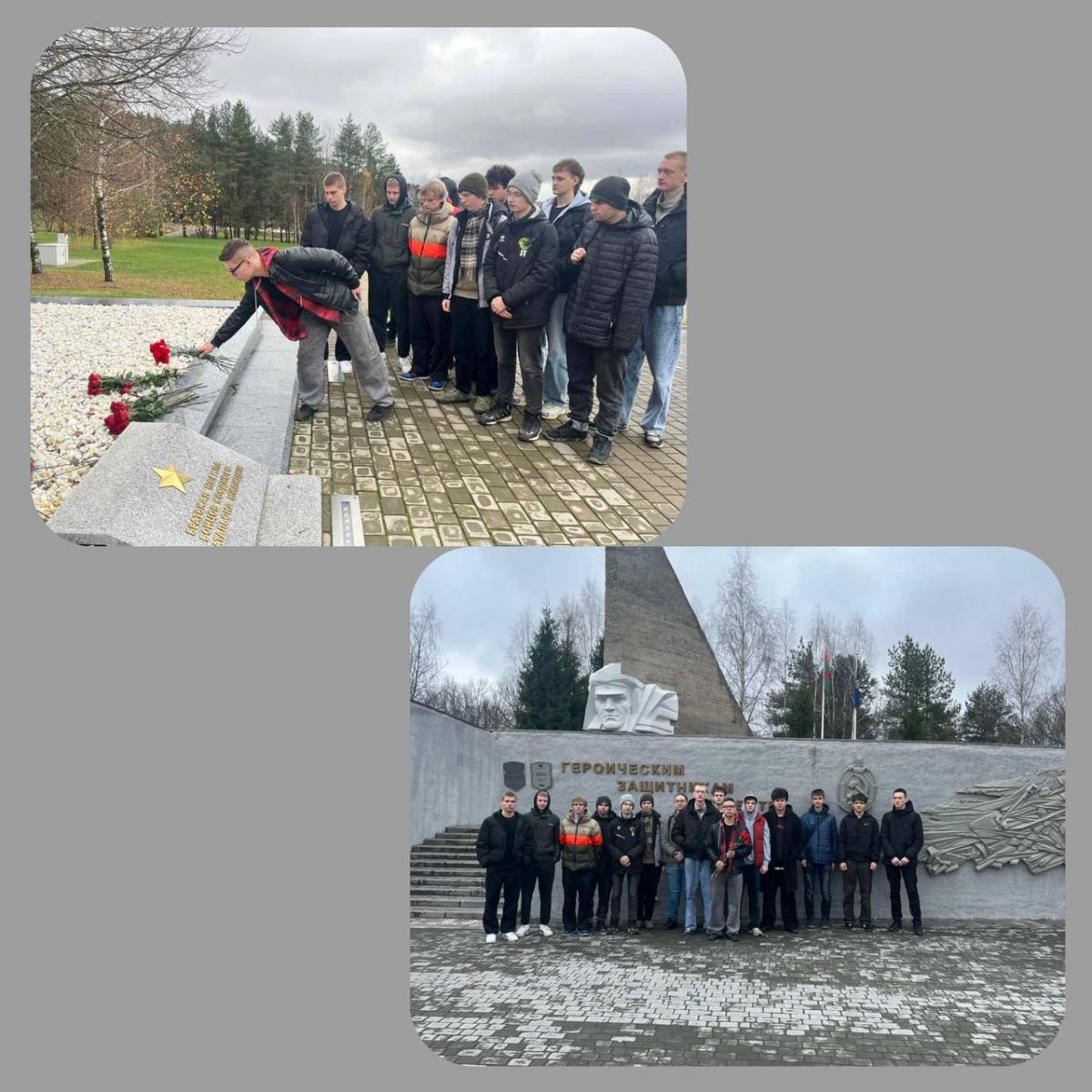 12.11 учащиеся учебной группы  ТО-477 с куратором Стефаненко Т. Н. посетили мемориал «Воинам батальона милиции», который расположен в д. Гаи Могилевского района. Мемориал представляет собой белую устремленную ввысь стелу-знамя, на древке которого рельефно изображены лица идущих в атаку воинов-милиционеров, совершивших летом 1941г. подвиг массового героизма. 1 марта 2017 г. рядом с памятником была открыта Аллея памяти бойцам батальона милиции капитана Константина Владимирова. В честь каждого из 17 погибших бойцов легендарного батальона из черного гранита были установлены стелы с инициалами, годами жизни, фотографиями большинства милиционеров.
