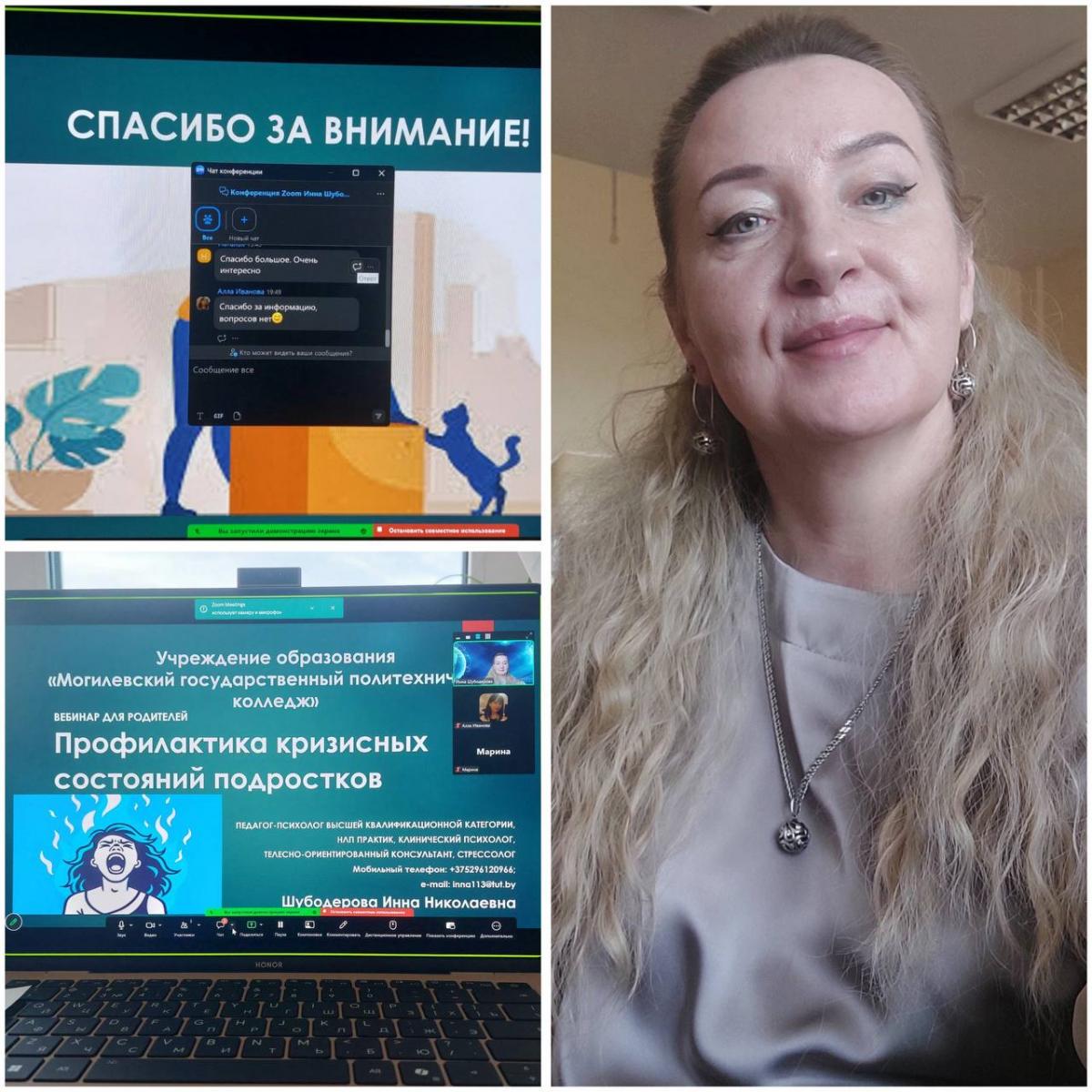 30.03.2026 Шубодерова Инна Николаевна, педагог-психолог колледжа, провела вебинар для родителей учащихся 1-2 курсов на тему «Профилактика кризисных состояний подростков».