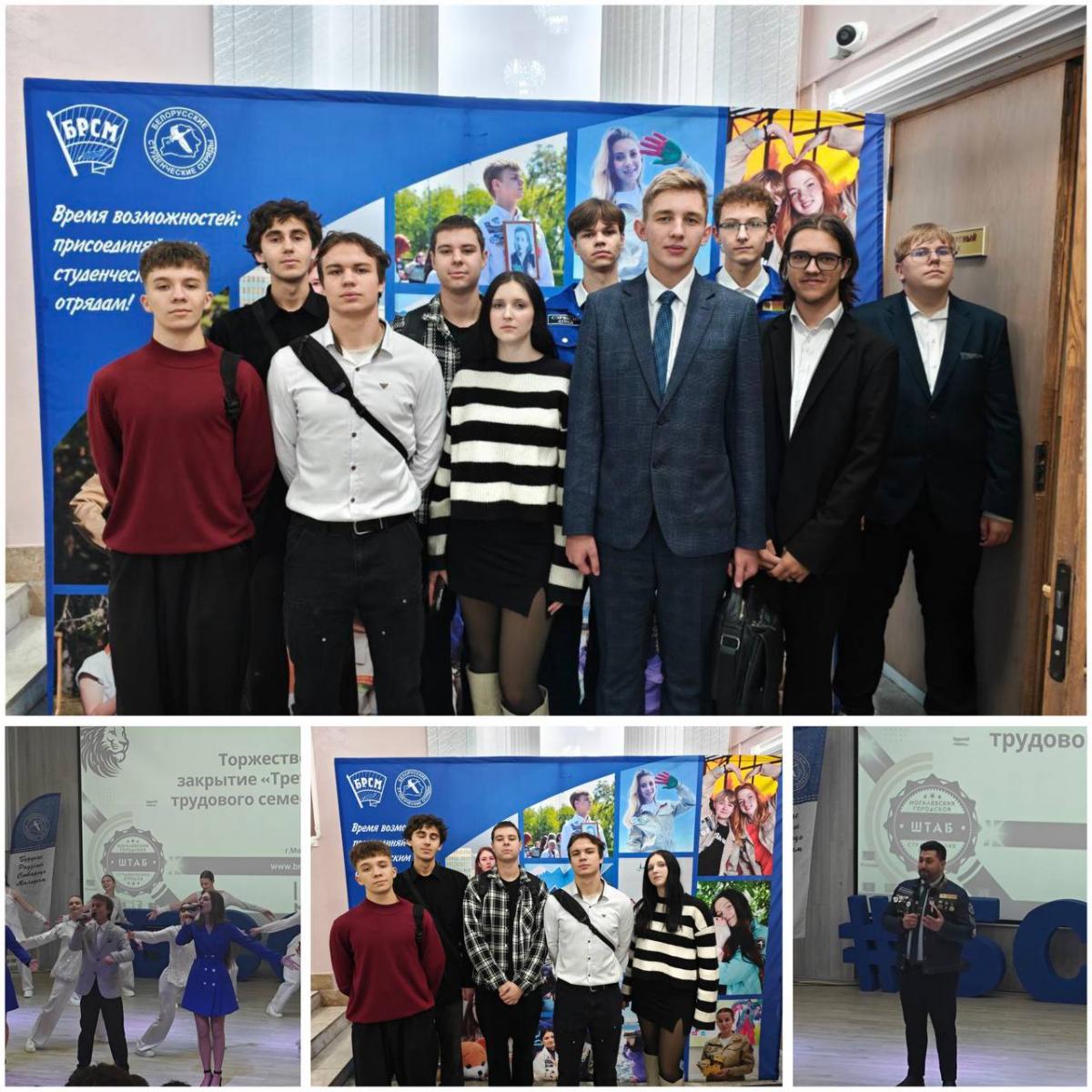 24 ноября, учащиеся политехнического колледжа, бойцы студенческих отрядов  приняли участие в торжественном мероприятии, посвященном городскому  закрытию Третьего трудового семестра - 2025, которое прошло на базе учреждения образования "Могилевская государственная гимназия-колледж искусств имени Е.Глебова".