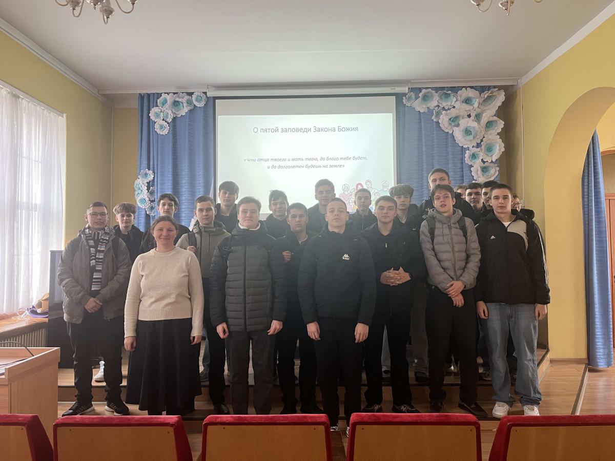 Учащиеся учебной группы ТО-530 посетили Храм святителя Георгия Конисского и поучаствовали в беседе «О пятой заповеди Закона Божьего», посвященной неделе родительской любви.