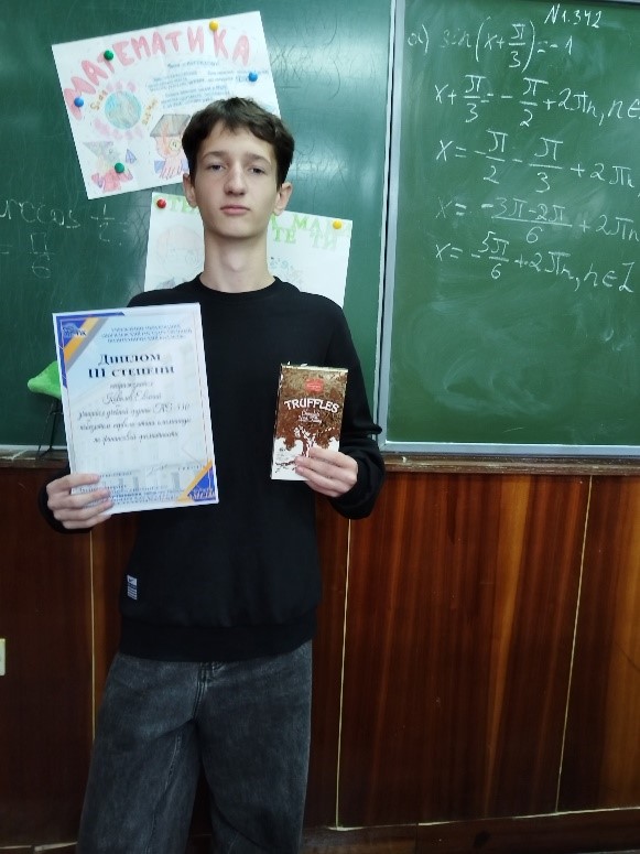 Диплом 3 степени - учащийся учебной группы ТО-530 Ковалев Евгений.