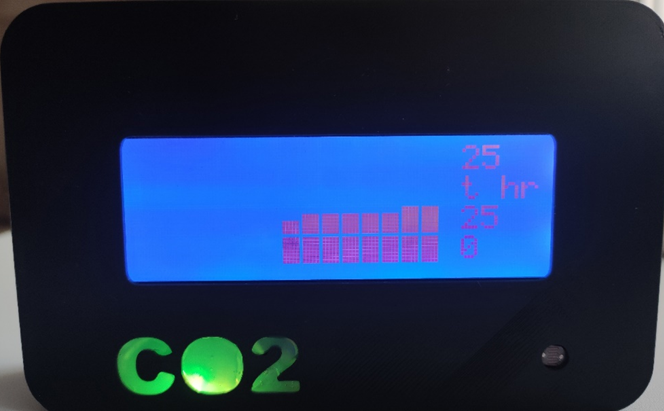 Корпус изготовлен на 3D-принтере, в качестве материально-технических ресурсов для изготовления опытной модели использовались: программируемая платформа ArduinoNano; модуль датчика температуры, влажности и давления ВМЕ280; модуль часов реального времени DS3231 (считает секунды даже после отключения питания); инфракрасный датчик углекислого газа МН-Z19; LCD дисплей 2004 синий I2С для Arduino; сенсорная кнопка ТТР223; гнездо USB (Type-C)