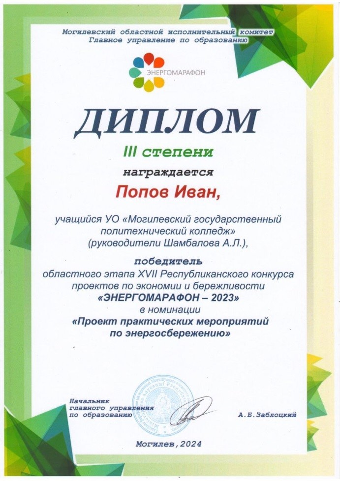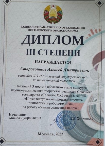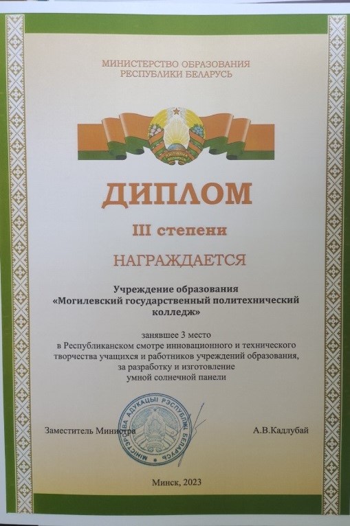 Учреждение образования, изготовившее экспонат: учреждение образования «Могилевский государственный политехнический колледж».