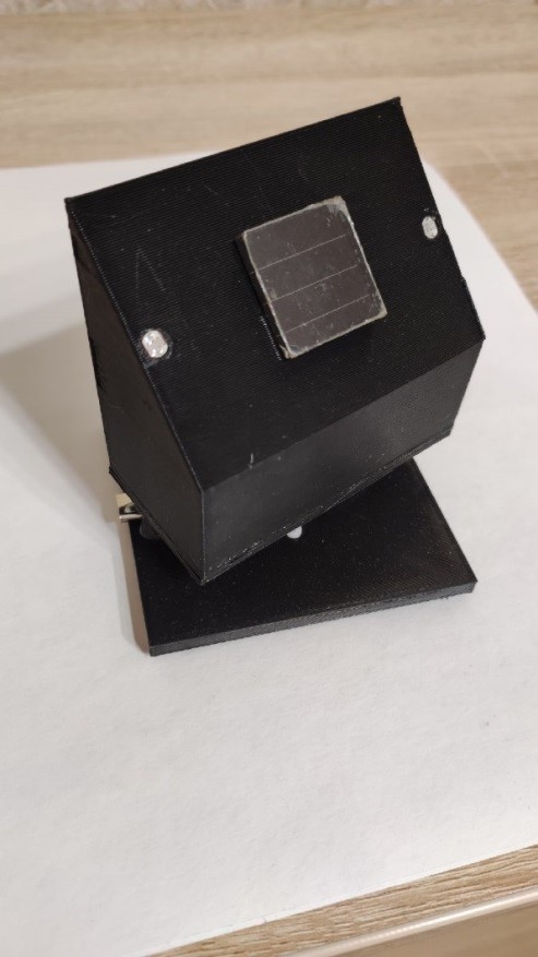 Принцип работы опытной модели: при попадании на 2 датчика (фоторезистора) солнечных лучей, возникает разность потенциалов, которую сервопривод пытается уровнять поворотом этих датчиков на источник света, что и заставляет солнечную панель двигаться к солнцу. Такой вид поворота реализован в целях демонстрации. Основная идея работы спроектированной системы заключается в следующем: зная расположение солнца в определённом месте в определённое время программируемая среда заставлять сервопривод плавно следовать за солнцем. Особенно успешно панель может использоваться в странах с очень активным солнцем, не теряя лишней электроэнергии. Корпус изготовлен на 3Д-принтере, в качестве материально-технических ресурсов для изготовления опытной модели использовались: сопротивление (резисторы 10кОм); фоторезисторы; программируемая платформа ArduinoNano; Wi-Fi модуль (esp8266);сервопривод (SG90); гнездо USB (Type-C)