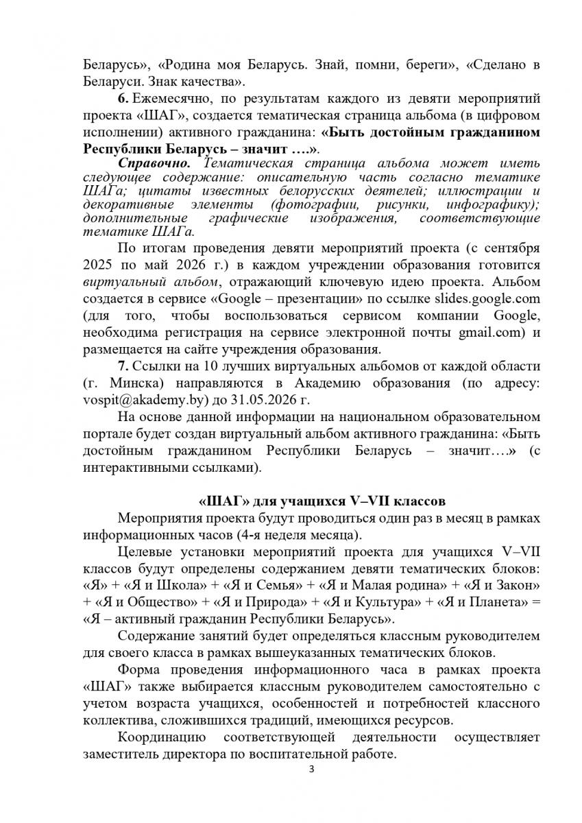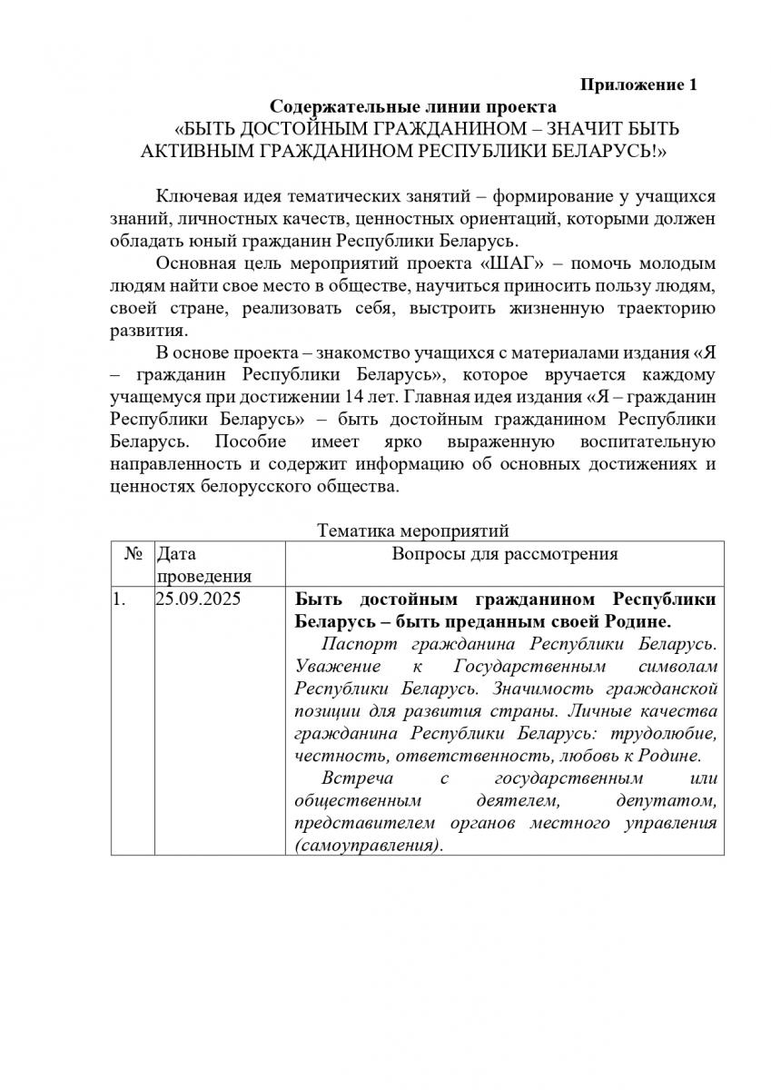 Тема мероприятий информационно-образовательного проекта «ШАГ» в сентябре 2025г: «Быть достойным гражданином Республики Беларусь – значит демонстрировать преданность своей Родине».